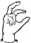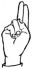 На ћирилици написано НИНА БИЗУМИЋ састоји се из 11 слова [?]. Исписано ћириличном једноручном азбуком за глувонеме: